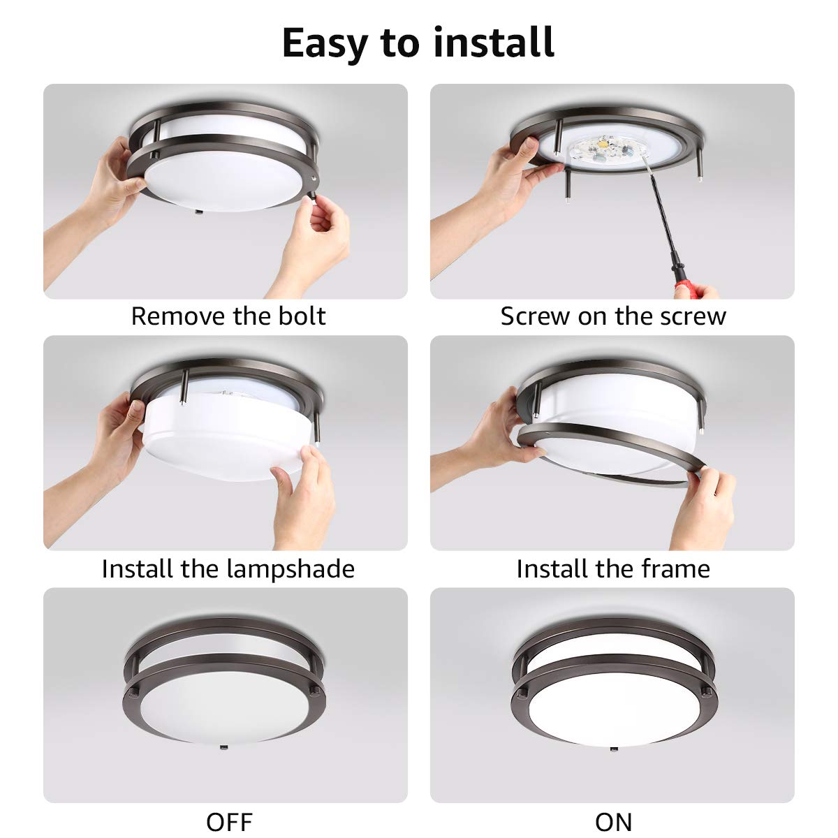 Some covers swing downward on a hinge or hinges, which hold the cover while you change out the bulb underneath. Hinges will allow the cover to hang down and swing out of the way to grant you easy access to the light bulb. Before you can install new lighting, you must remove the old fixture. It is attached flush to the ceiling, i tried rotating it both ways and also tried pulling it, but it wont come off. Make sure to loosen the screws slowly and be ready.